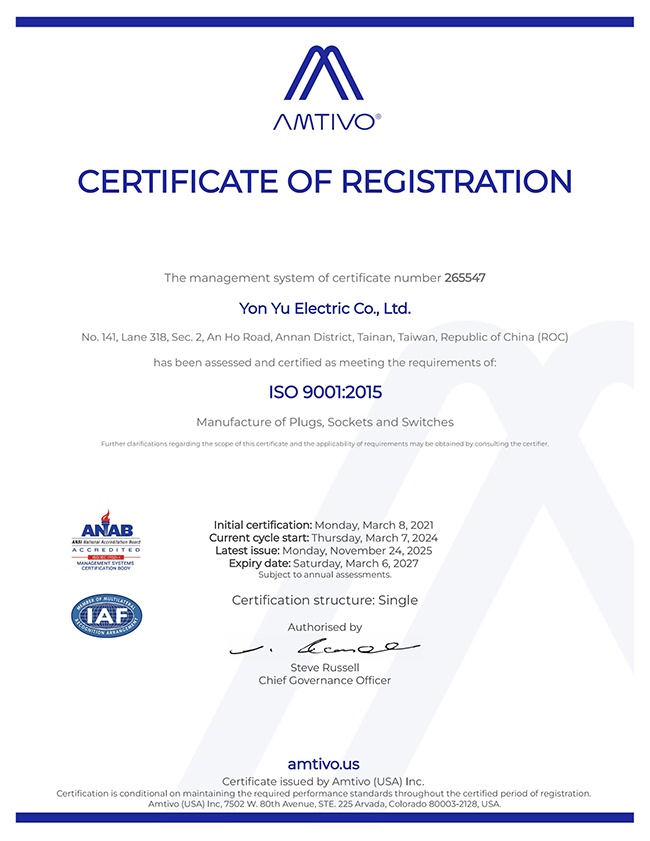 Yon Yu Electric was founded in 1979 and its main character is the manufacturing industry. Our brand is "LONG KUANG". The range of main products includes NEMA Locking Type Plugs & Receptacles, NEMA Locking Type connector Plugs & Receptacles, Ground Type Plugs & Receptacles, Switches, Stainless Covers, Fuse Seats, Terminal Plates, etc. We use professional design developing ability, and product diversification, and we also welcome OEM.
